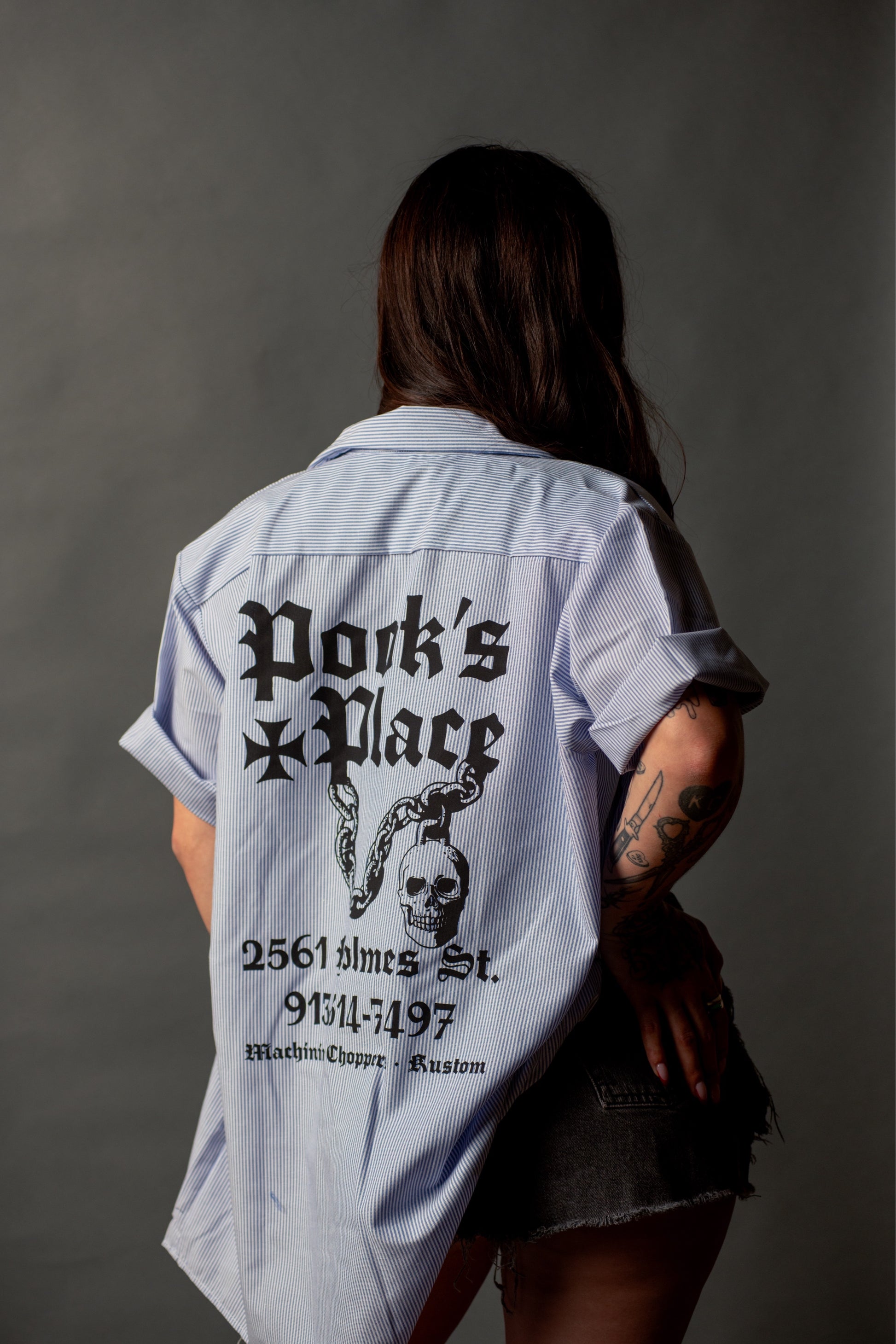 Introducing our first shop tee for the new location. Pook's Place is located in the heart Kansas City Mo. This is where all our parts will be made, choppers built, and good times had. Support the dream and stop by for a beer.